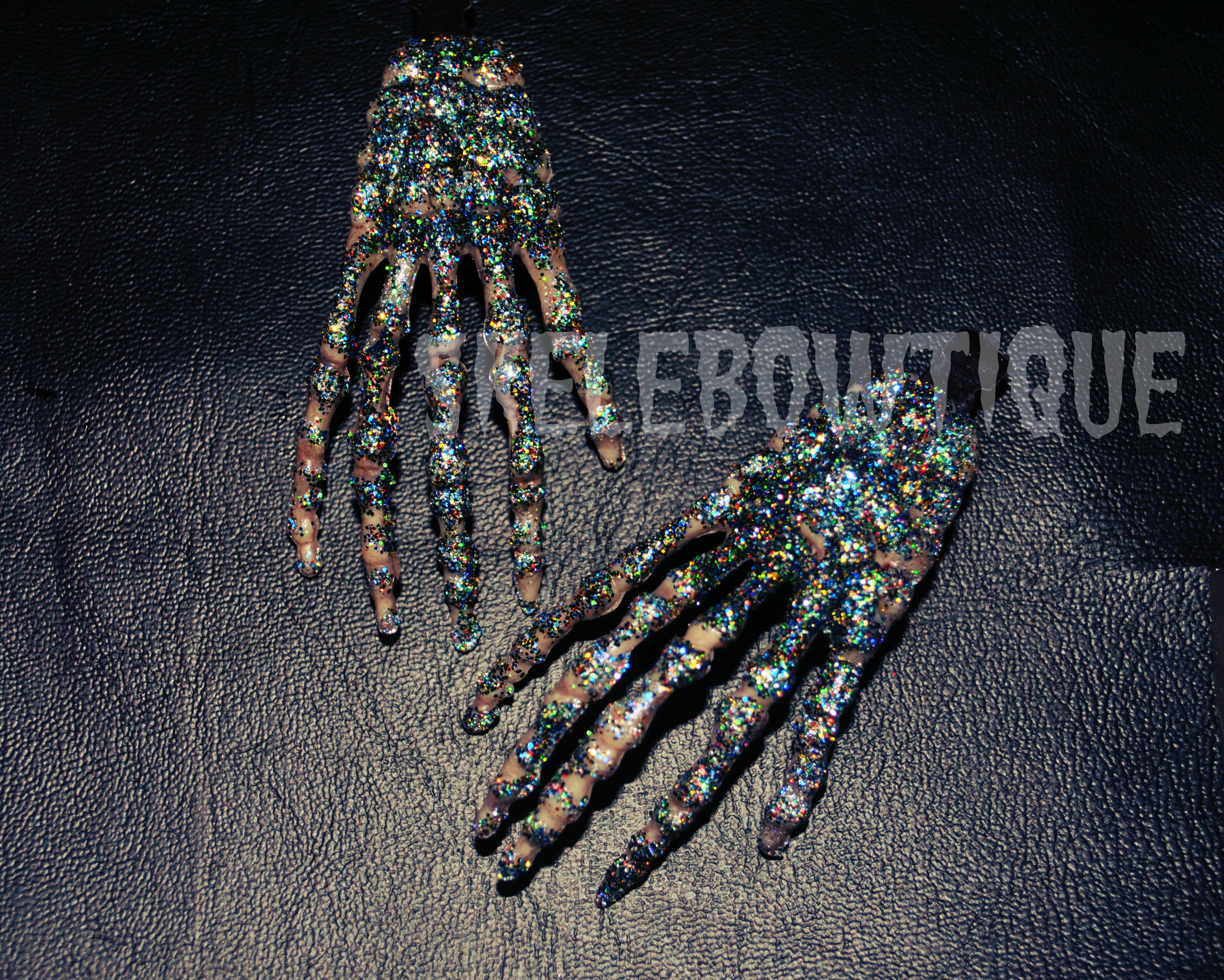 Skeleton hand glitter clips. They're just pretty. And the come in pairs :)